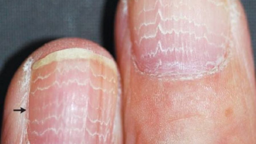 Jednymi z dość charakterystycznych zmian są tzw. linie Beau, czyli linie występujące w poprzek płytki paznokcia.