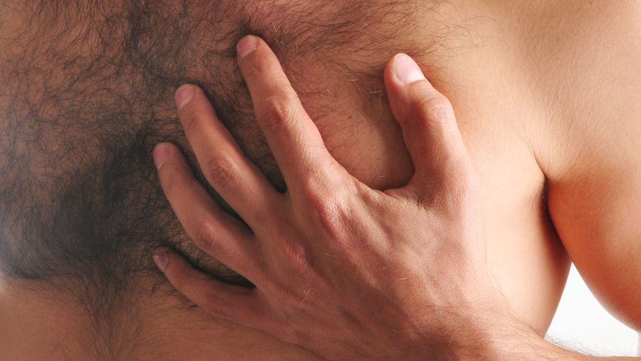 Mężczyzna trzyma sie za pierś