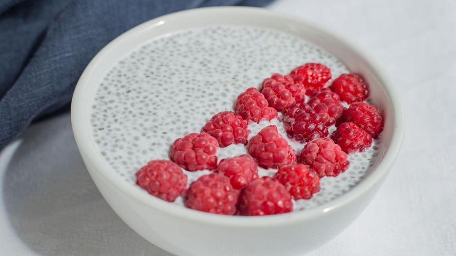 - Pudding chia z malinami. Wymieszaj 2 łyżki nasion chia, 200 ml mleka roślinnego, łyżeczkę miodu i garść malin. Odstaw na noc do lodówki. Rano kremowy deser będzie gotowy.